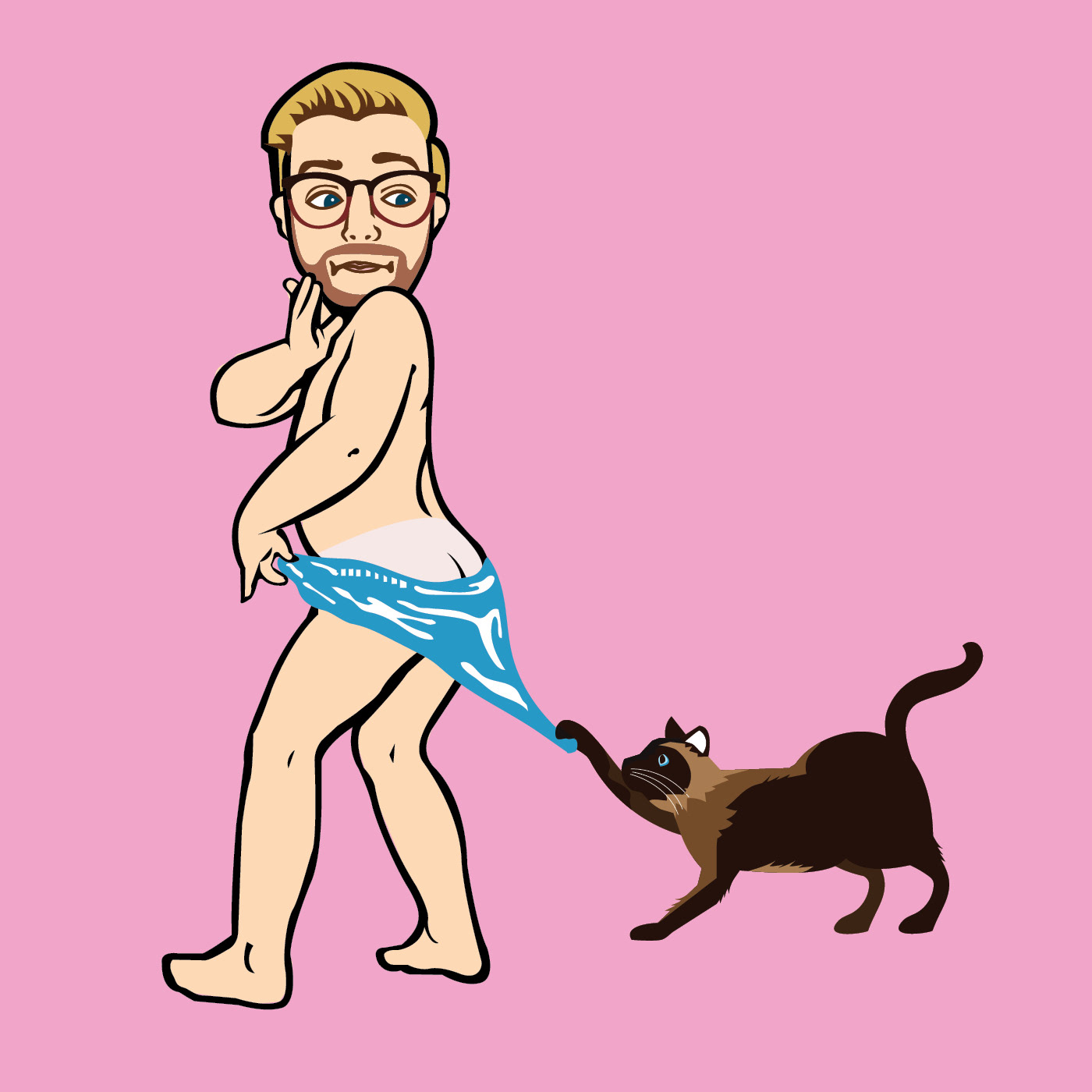 After Josh had me create a portrait of his girlfriend Laura and their dog Betty in the style of the Morton Salt girl, Laura hired me to portray Josh and their cat Bernard in the style of the Coppertone Sunblock girl. It was a blast to do both.