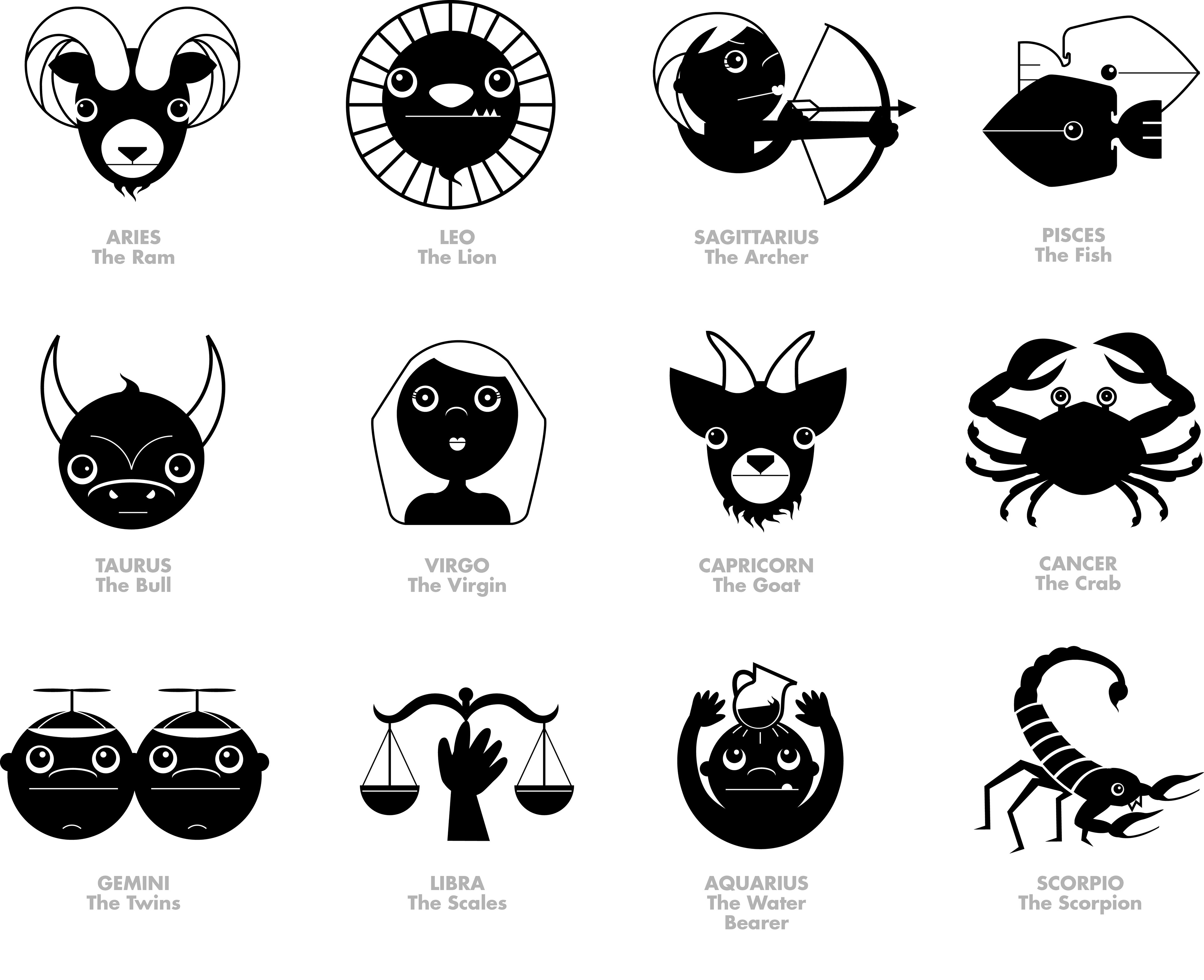 These playful modern interpretations of zodiac symbols were created for the weekly horoscopes section.